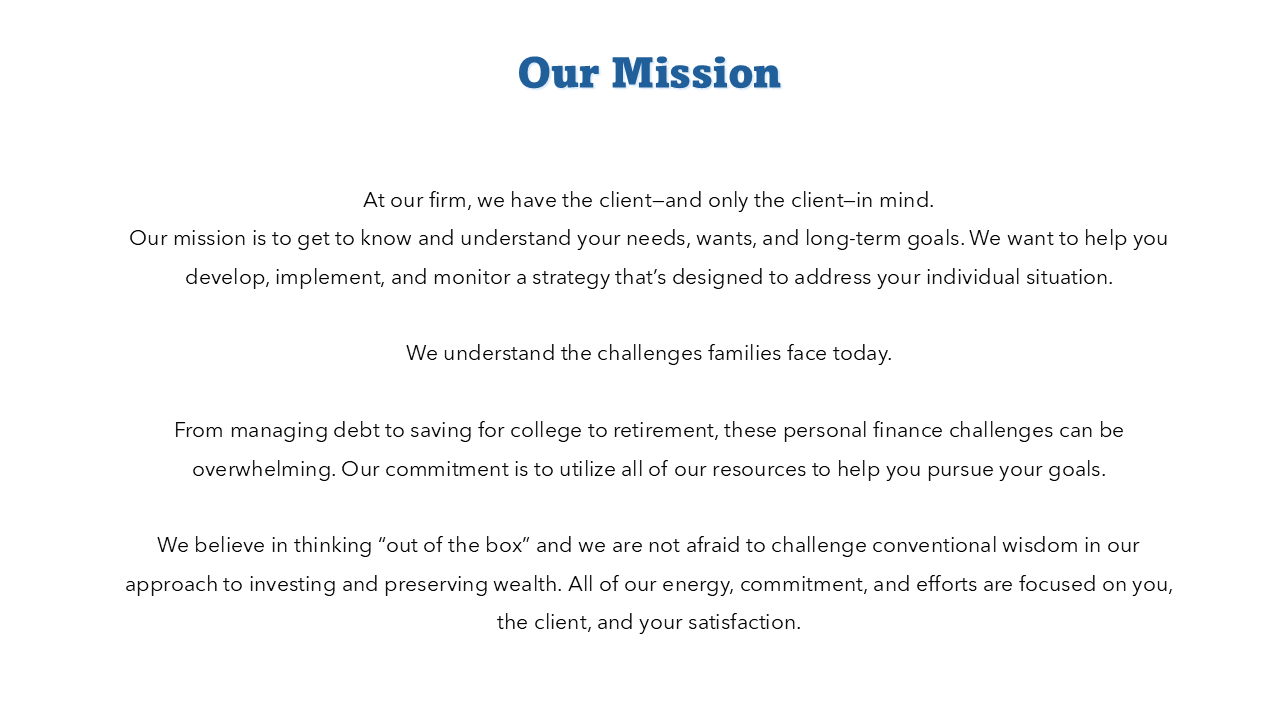 One of our primary goals is to develop a long-term, trusting relationship with you.